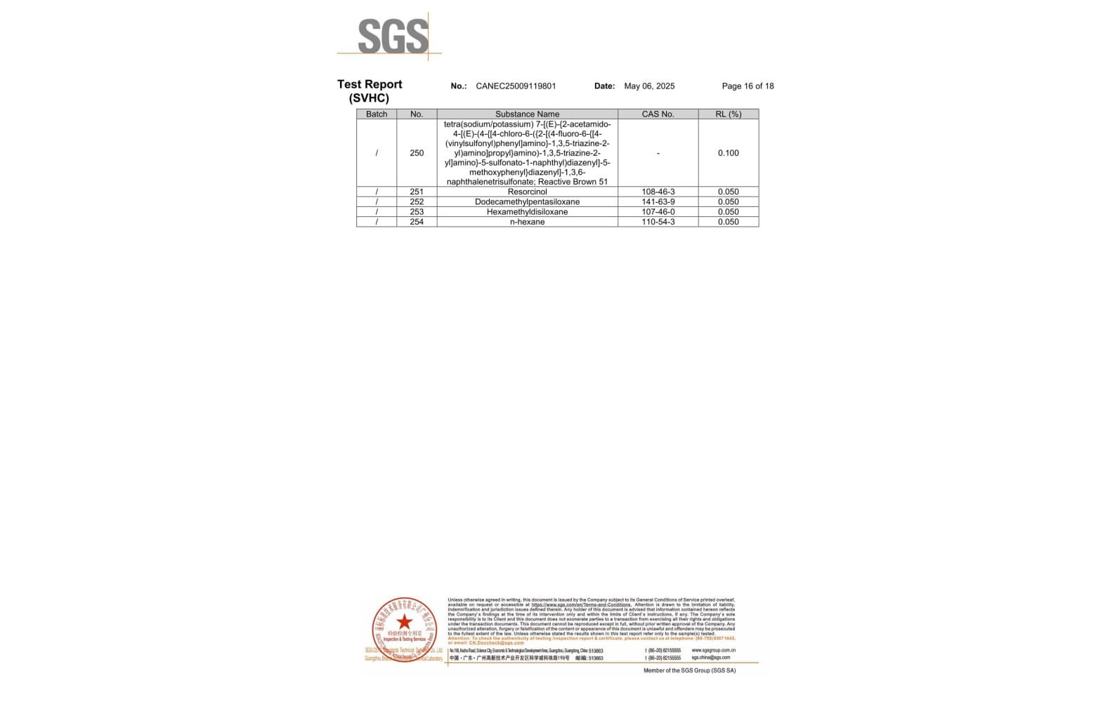 環保測試報告 SVHC CANEC25009119801